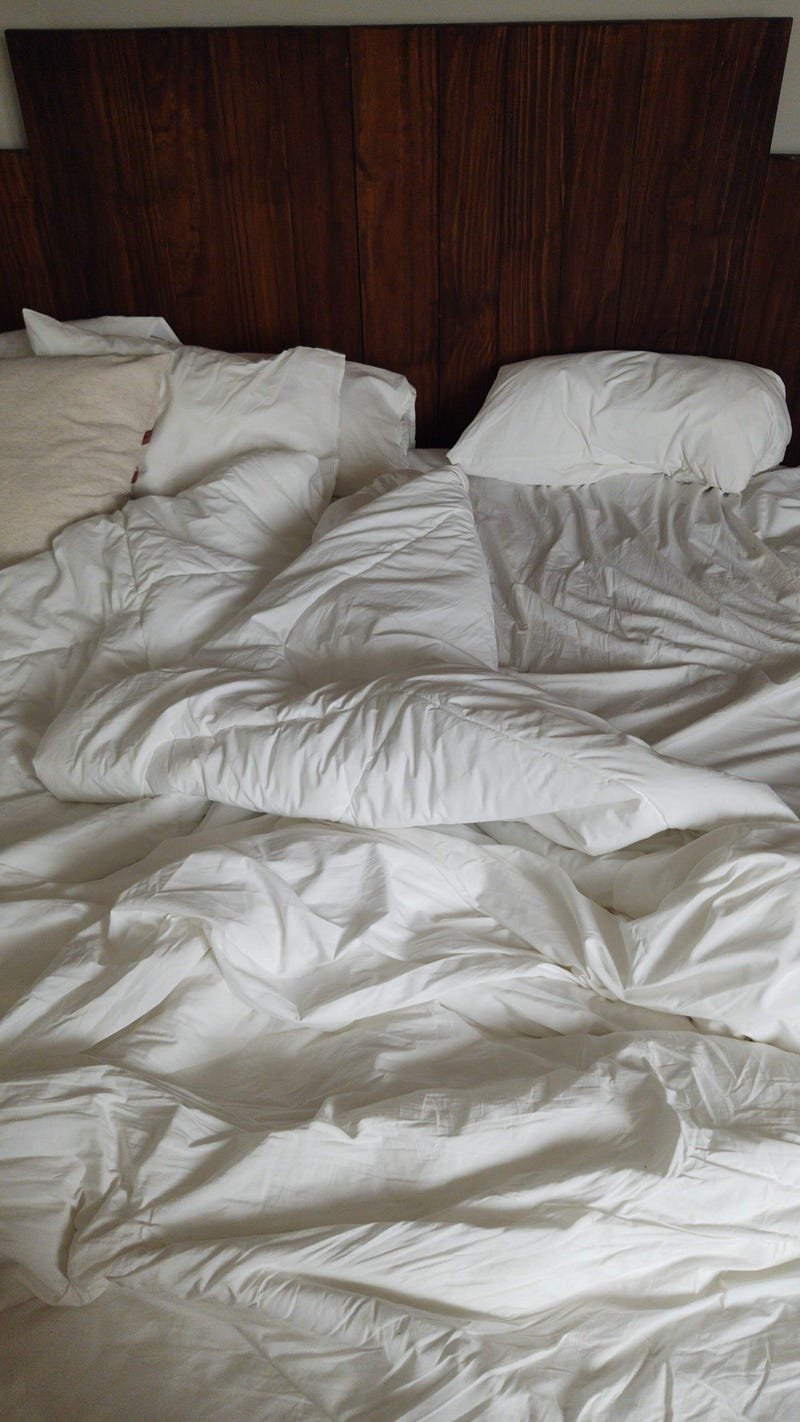 Que bagunça a gente fez. Deito no teu peito enquanto eu penso — “estragamos tudo”.